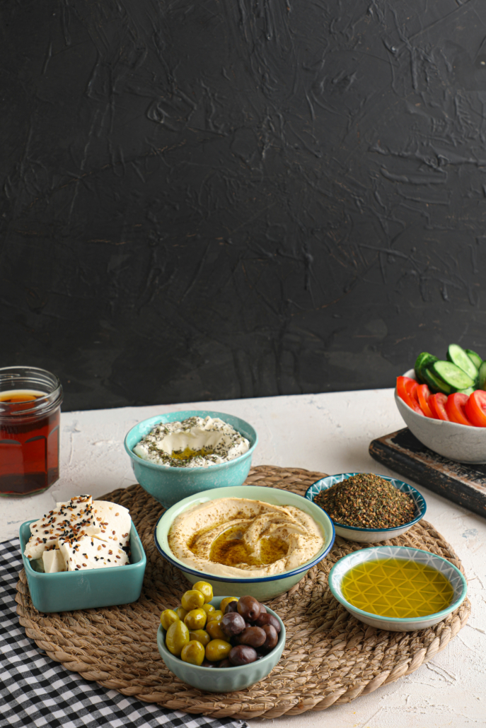 لبنة – جبنة – مسبحة – زيتون – زعتر وزيت – خضار ومخلل
